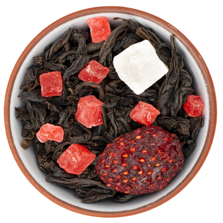 Напиток с глубоким древесным ароматом ассама. Легкая кислинка клубники и густая сливочность кокоса создают гармоничный вкус.